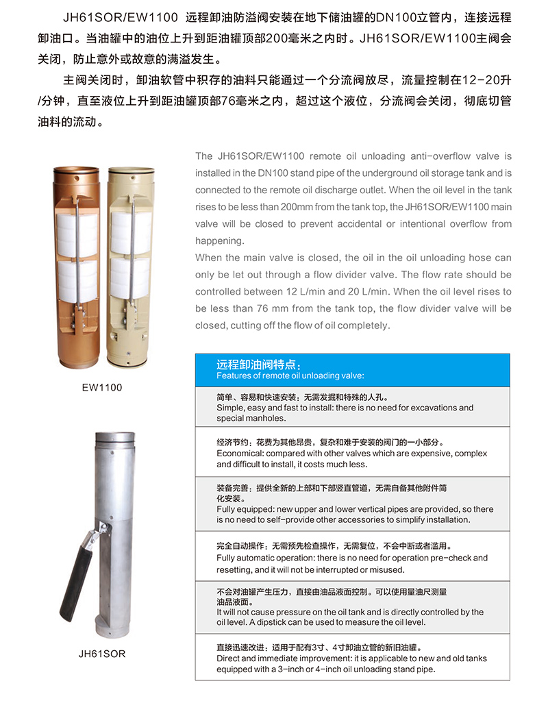 JH61SOR/EW1100远程卸油防溢阀 - 油库附件 - 凤城91免费高清视频石油机械有限公司